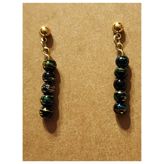 Elegant Purple Marble Beaded Hoop Earrings w Silver Hook Earwires, Pierced